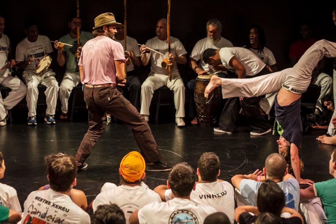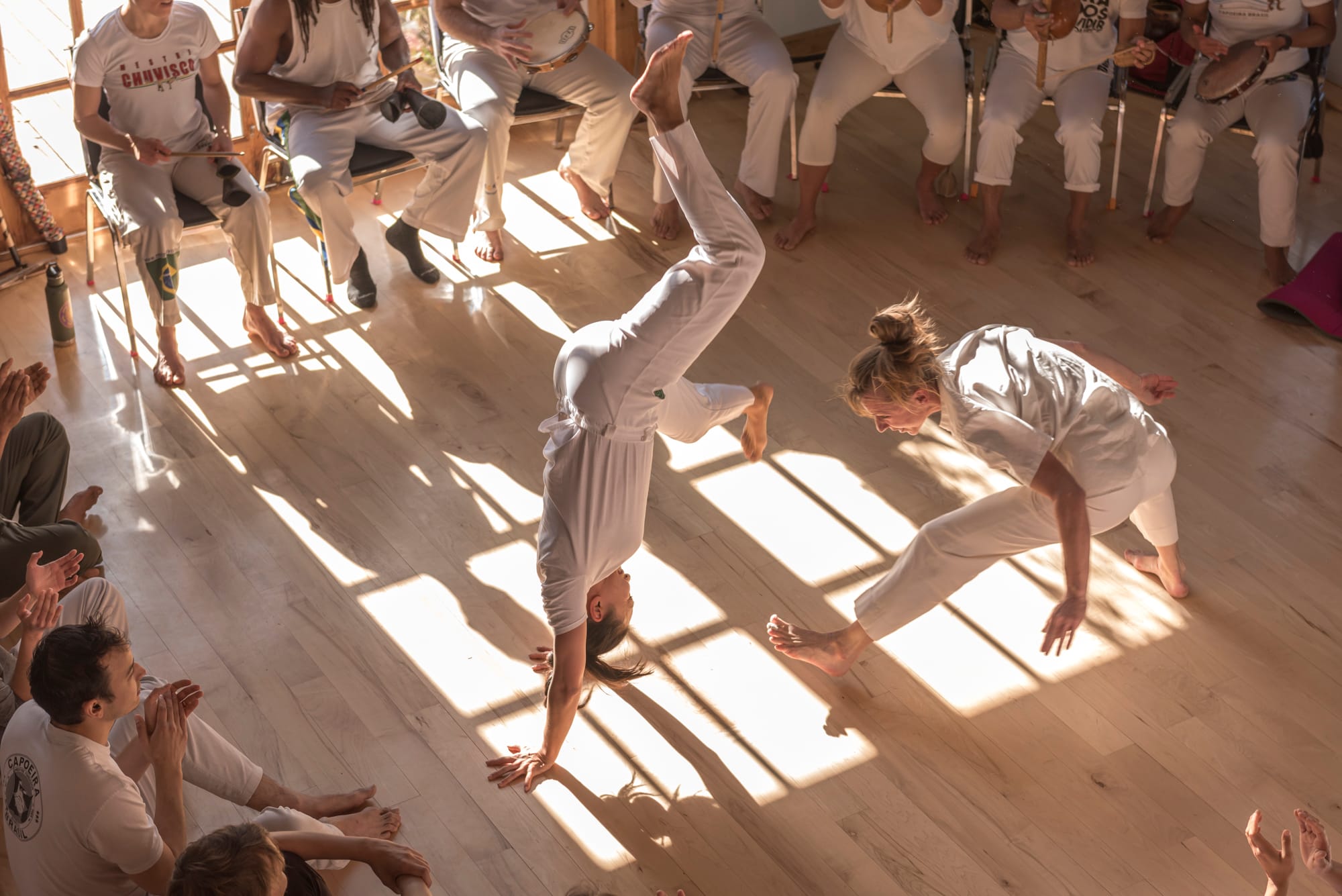 In addition to her primary teachers Mestres Acordeon, Suelly, and Rã, she has studied directly with many of the most renowned capoeira lineage holders in the world: Mestre Gato, Mestre Mago, Mestre Cobra Mansa, Mestre Valmir, and Mestre Panao, Mestre Calango, Mestre Amunka, Mestre Galo, Mestre Amen, Mestre Lobao, Mestre Effraim, Mestre Marrom, Mestre Nestor Capoeira, Mestre Itapoan Beiramar, Contra Mestre Dondi, and many others.